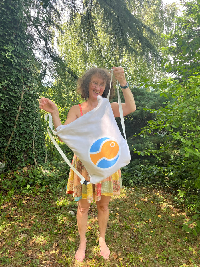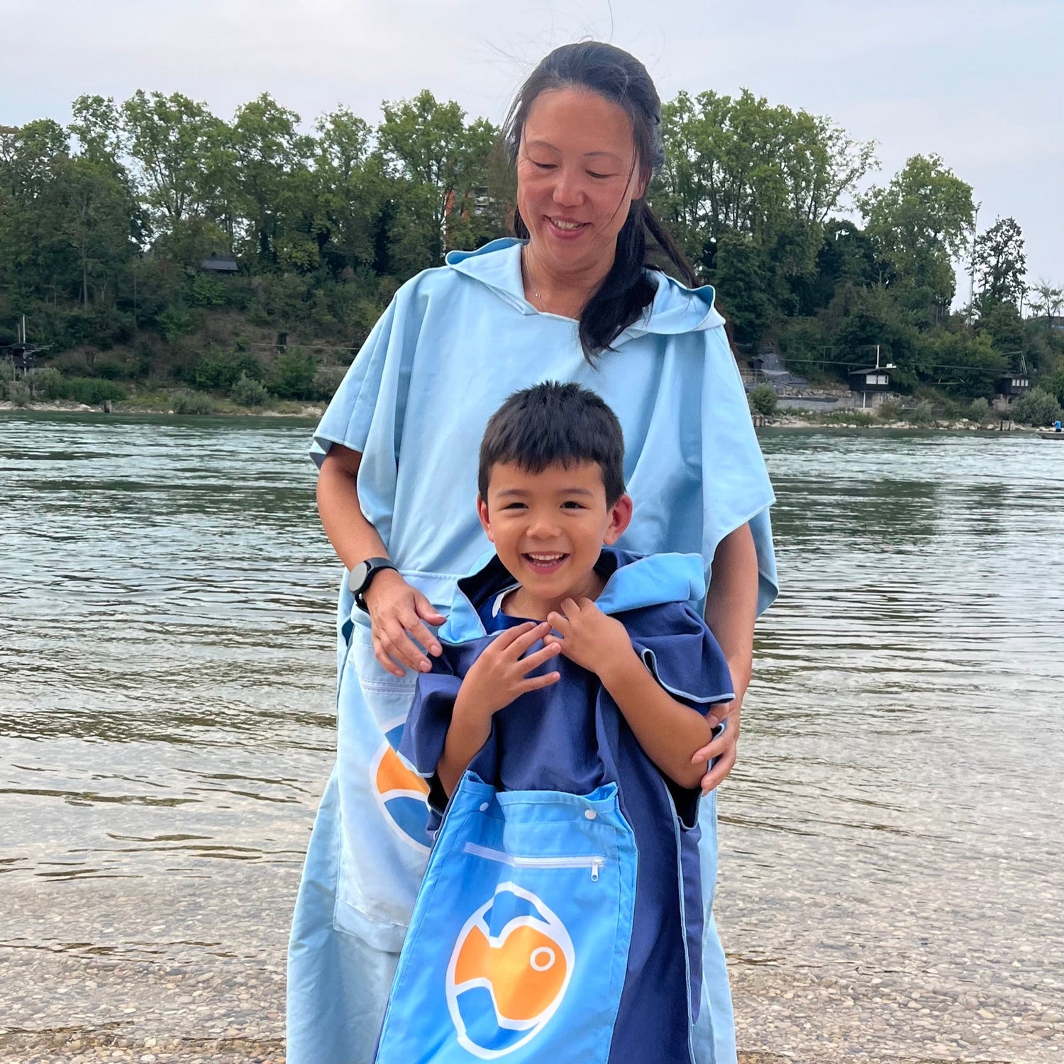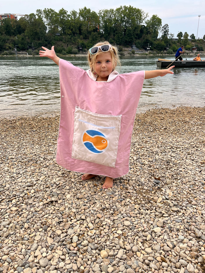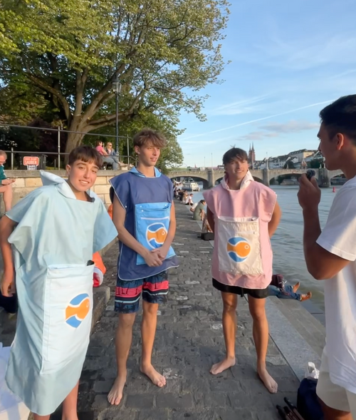Der Rucksack ist wirklich sehr praktisch. Man kann nasse Sachen gut verstauen, und der Poncho macht das Umziehen viel einfacher. Eine clevere Idee – gerade für uns, die gerne schwimmen gehen. So etwas hätte es früher nicht gegeben.“